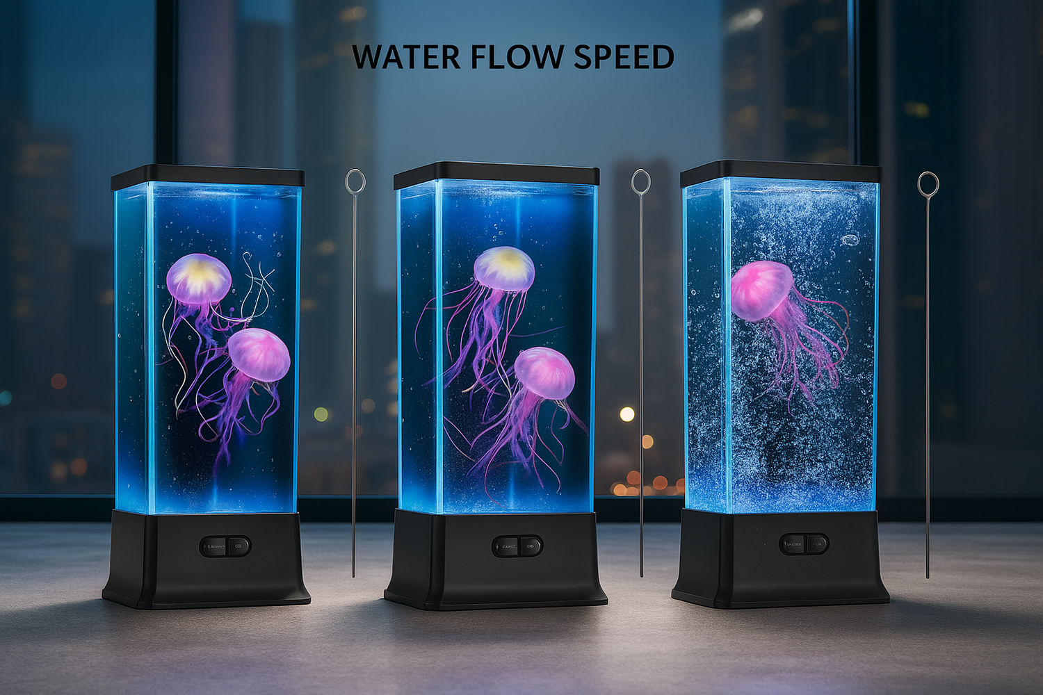 Customize 3 water flow speeds to control the movement of the jellyfish: